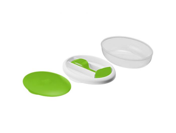 Contient une fourchette pliable, un compartiment pour plat cuisiné, salade