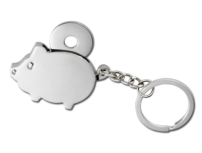 Porte-Clé Publicitaire Cochon avec jeton de 1 Euro intégré