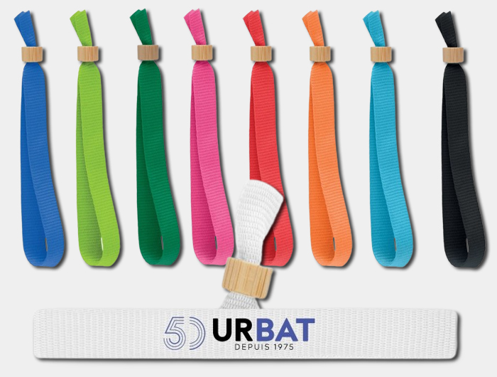 Bracelet en polyester disponible dans une large gamme de coloris vifs, avec fermeture coulissante en bambou naturel. Confortable et léger, il s’adapte facilement au poignet et offre un support de communication simple mais efficace. Idéal pour les événements, festivals, associations ou opérations de communication éco-responsable grâce à l’utilisation du bambou.
