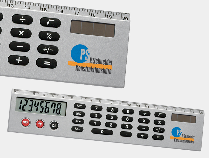 - Dimensions règle calculatrice solaire personnalisable 20.8 x 4.5 x 0.7 cm