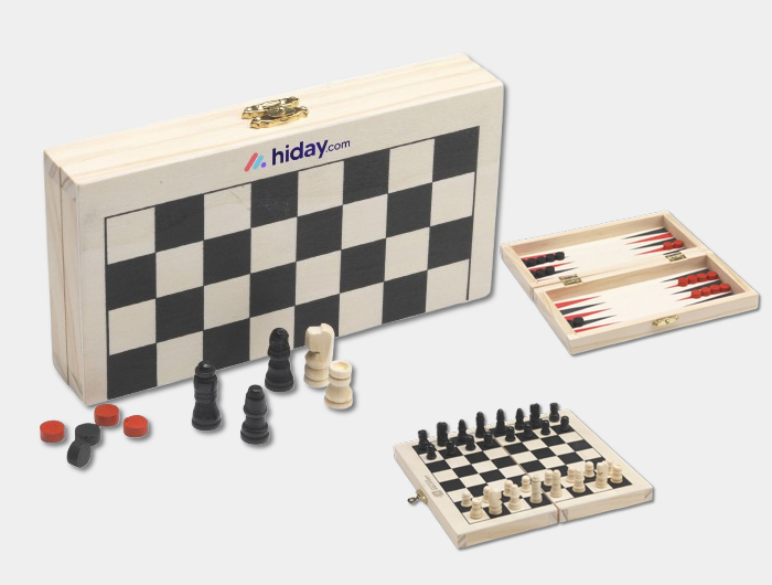 Boîte de jeu 3 en 1 personnalisable Échecs Dames Backgammon - JEU3EN1-42