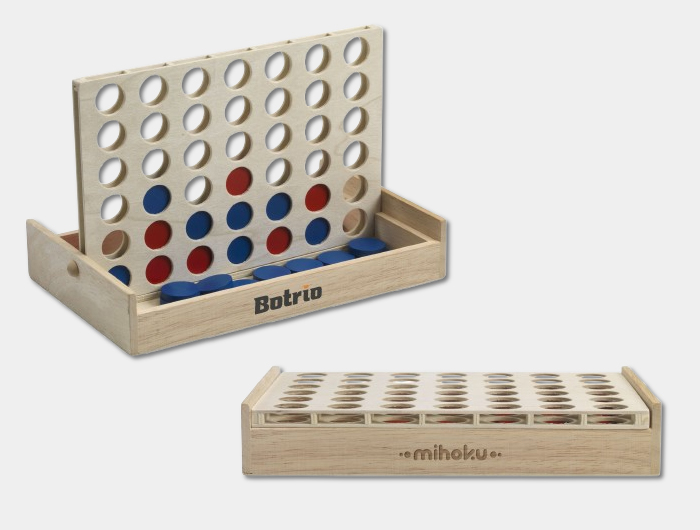 Jeu de stratégie Puissance 4 en bois, idéal pour petits et grands. Fabriqué en polywood et contreplaqué certifiés FSC 100%, ce modèle compact est conçu pour durer et respecte l’environnement.