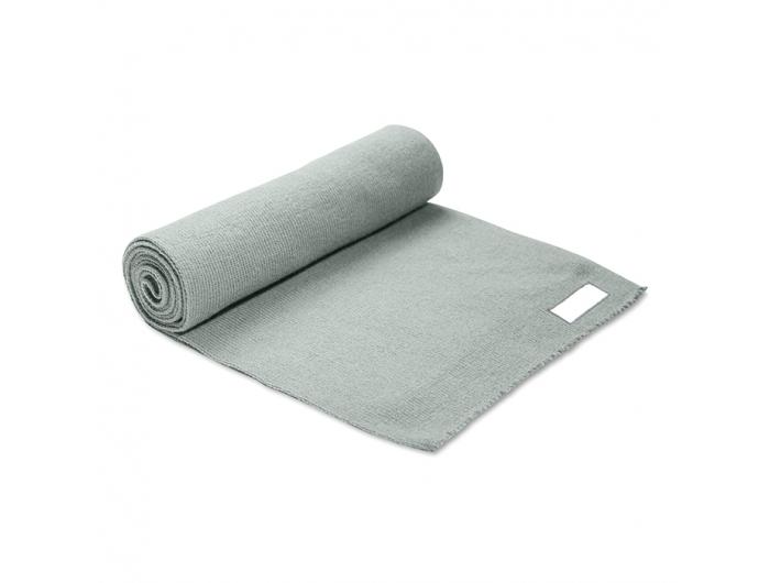 Echarpe Personnalisée, grise, en acrylique tricoté avec étiquette brodée sur le coté pour la personnalisation