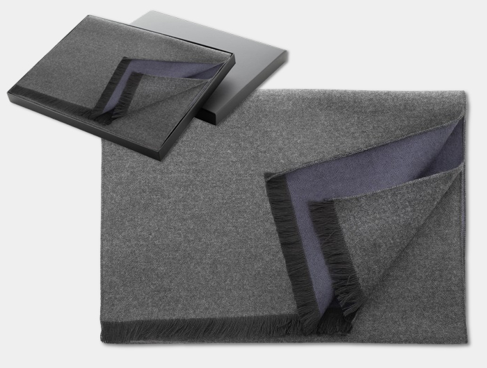 Offrez un accessoire à la fois chic et intemporel avec cette écharpe publicitaire personnalisée pour homme, présentée dans une élégante boîte cadeau noire.