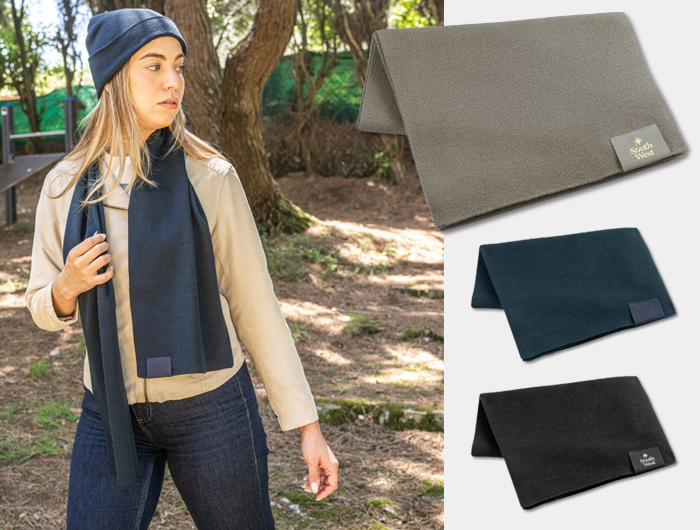 Cette écharpe publicitaire peut être brodée ou marquée sur son petit empiècement cousu — un emplacement discret et raffiné qui met en valeur votre logo sans altérer le style du produit.