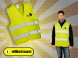 Gilet de Sécurité Adulte Pas Cher avec bandes réfléchissantes pour une bonne visibilté sur les chantiers, BTP, accompagnement sorties scolaires, association motards, running, vélo ... pour sécurité prévention lorsque qu'un conducteur se trouve sur le bas côté de la route suite à arrêt d'urgence ...