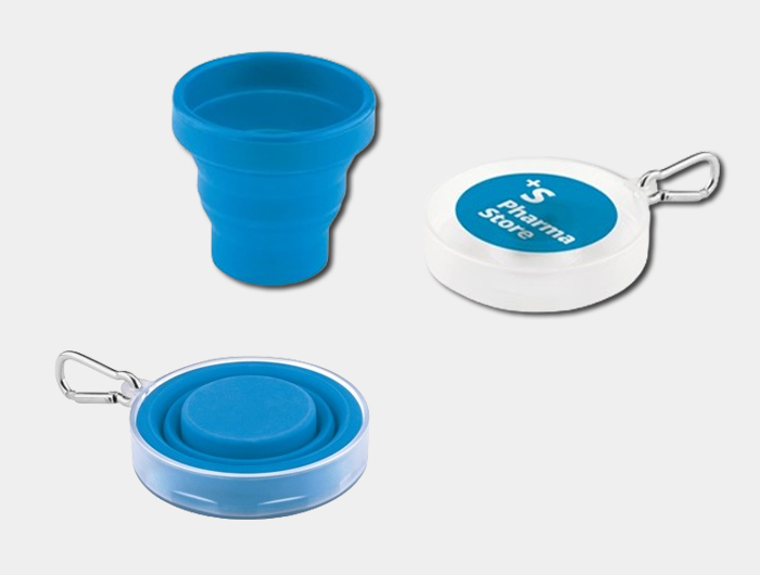 Pilulier Publicitaire rond avec verre intégré, mousqueton