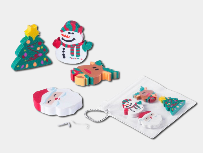 Chaque ensemble comprend 4 gommes avec figurines de Noël