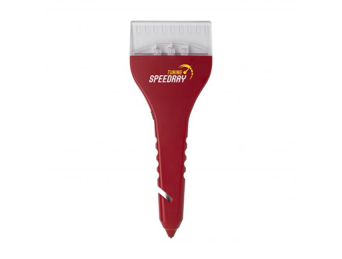 Grattoir Publicitaire multifonctions muni d'un éclairage 3 LED blanches, un marteau de secours et un couteau pour couper la ceinture de sécurité