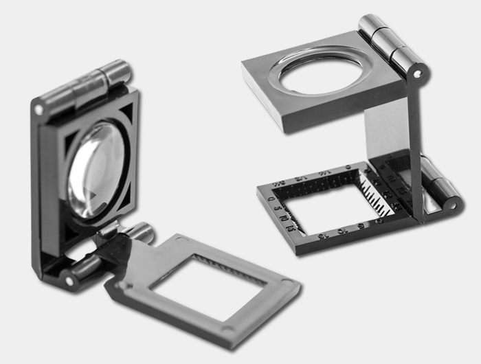Loupe compte-fils pliante avec grossissement x 7 avec règle de mesure intégrée