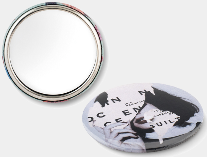 - Dimensions badge miroir personnalisé Ø 5,8 cm