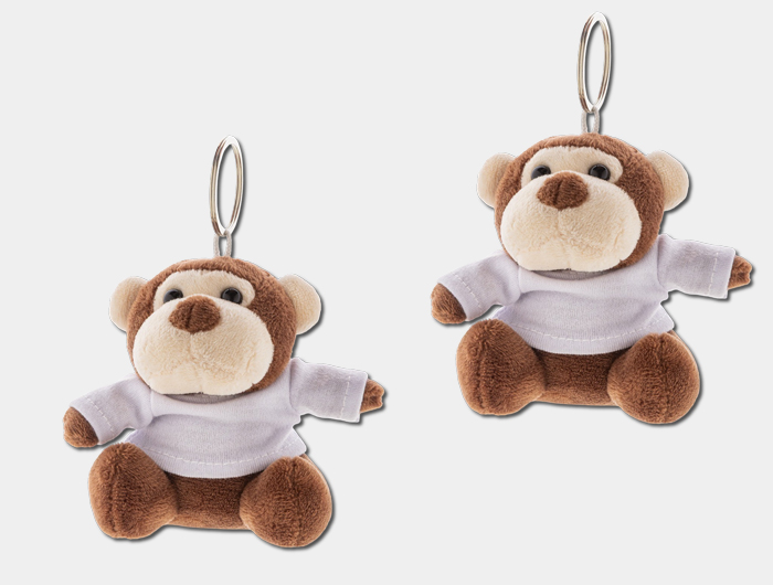 Porte-clés en peluche singe, équipé d’un t-shirt personnalisable, conçu pour accompagner vos clients, visiteurs ou collaborateurs partout avec eux. Grâce à son format compact et à son anneau porte-clés, ce goodie offre une excellente visibilité de marque au quotidien, tout en conservant un côté affectif et sympathique.