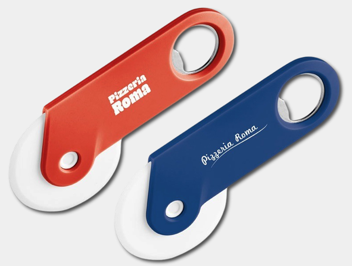 Roulette à pizza Publicitaire munie d'un décapsuleur