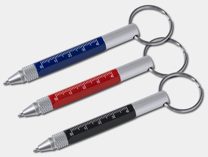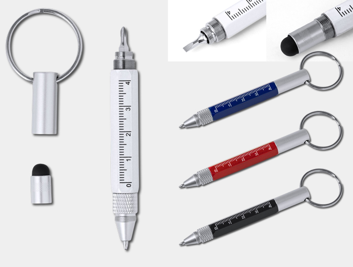 5 fonctions : stylo à bille, règle, pointeur, tournevis plat, tournevis cruciforme (Phillips)