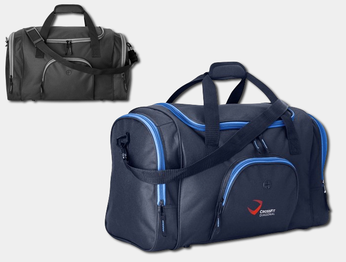 Sac de sport Publicitaire Chicago, en polyester 600D avec 2 compartiments latéraux zippés et une poche avant