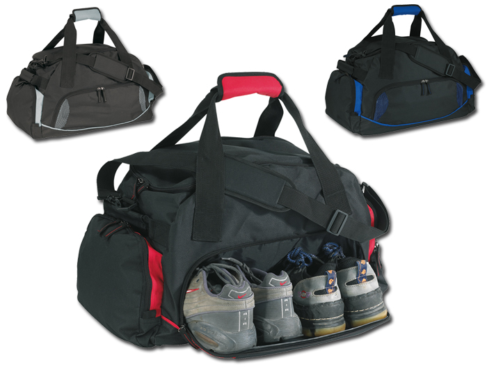 Au choix : sac de sport bleu et noir, gris et noir, noir et rouge
