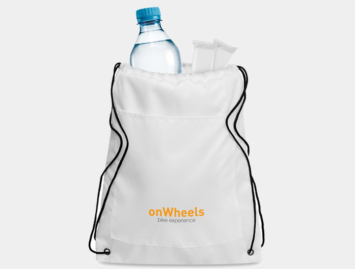 Sac à dos isotherme Publicitaire blanc, en polyester 190T avec poche sur le devant