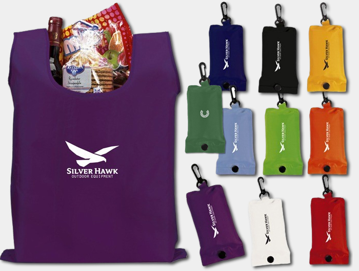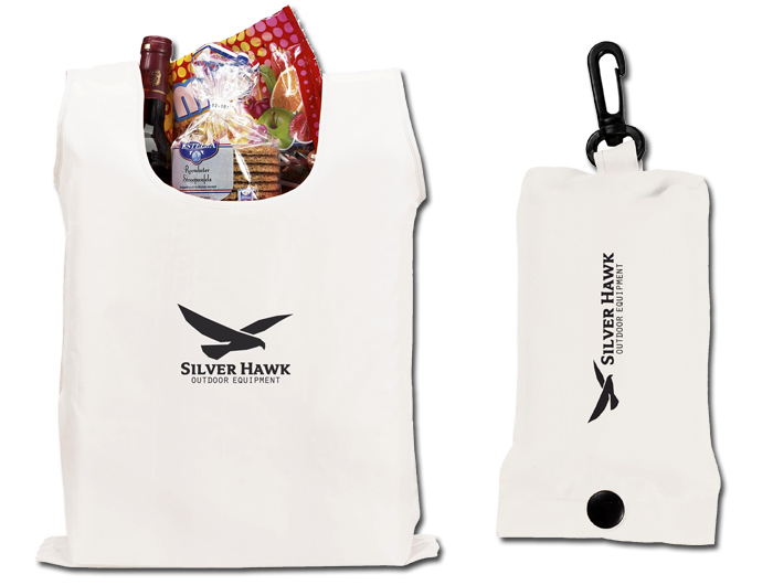 Sac cabas pliable Publicitaire, avec mousqueton, bouton pression, pochette de rangement