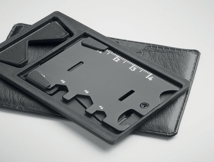 Ce multi-outils personnalisable est un indispensable du quotidien. Fabriqué en acier inoxydable et PP, il est présenté dans une élégante pochette en PU qui facilite son transport et protège les accessoires. Compact et léger, il est parfait comme cadeau publicitaire utile et durable.