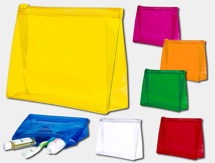 Optez pour l'élégance et la praticité avec cette trousse de toilette colorée transparente, un accessoire incontournable à personnaliser selon vos besoins promotionnels